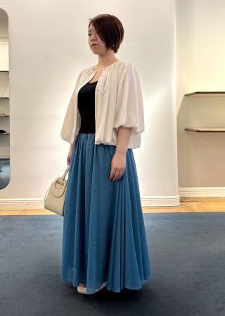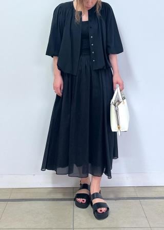また同素材のワンピース(品番:GGE25220)と合わせれば、バルーン袖ワンピース風の着こなしができます。