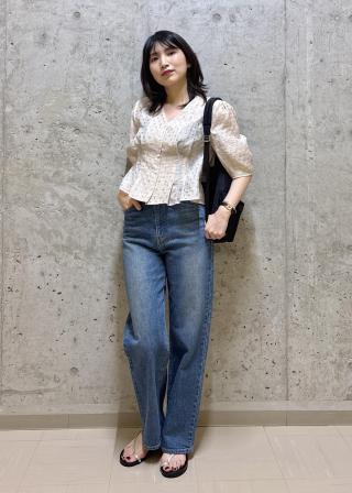 ありそうでないデザインのブラウスです。袖の長さも上品です。そんなブラウスとデニムの合わせが気に入っています。