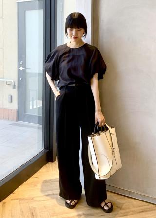 袖口はバルーンスリーブになっており、程よいボリューム感が二の腕周りをカバーしつつ、デザイン性を際立たせてくれるので、シンプルなストレートパンツや