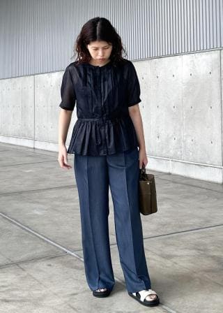 シアー感があり、ペプラムデザインの為、スッキリ感があります。
