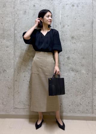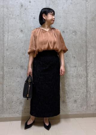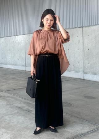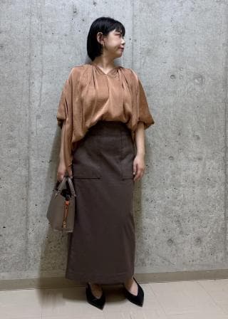 タックイン、タックアウト両方の着こなしが叶い、幅広いスタイリングが可能。裾アウトでパンツと合わせると、お腹周りをさり気なくカバーしてくれるスタイリングが完成。また、ロペ定番のポケット付きタイトスカートとの合わせは、裾インでもアウトでもバランス良く着用可能!落ち感とドレープが華やかなので、シンプルなボトムと合わせて、バランスを調整したスタイリングがおすすめです。