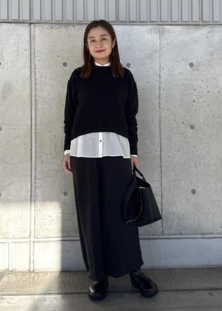 上からニットを重ねるのもおすすめです!