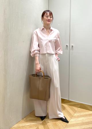 丁度ウエストベルトにかかるくらいのクロップド丈で、1枚着としても羽織りとしても使えます。袖にタックをたっぷり入れ、ボリューム感を付けデザインアクセントにしています。