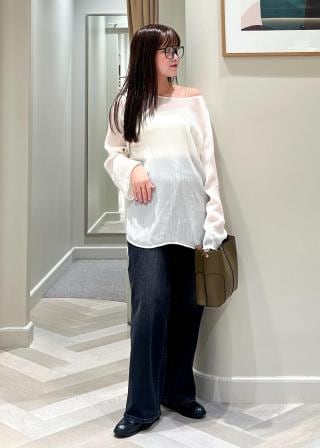 前後ろどちらでも着ていただける2WAYネックラインです。シアー素材ですが春秋はインナーにキャミソールを合わせて、冬はニットのインナーにして裾や袖を出したレイヤードstyleで使える着回し力抜群のアイテムです。