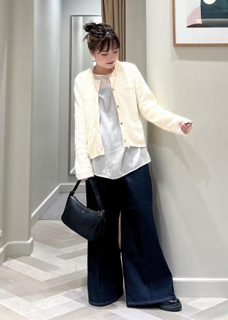 秋冬には、上からカーデなどニット合わせもおすすめです。