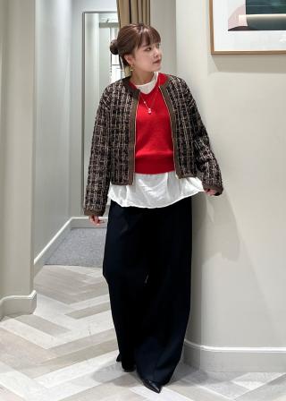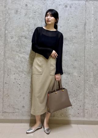 軽く透け感がありますので、キャミソールや薄手のタートルネックなど、インナーの形でも印象が変わります。