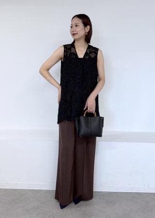 リネンジレと重ねて上品なレイヤードスタイルが◎カットソーやシャツとの重ね着でも、華やかに映えます。