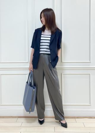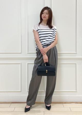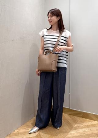 シンプルでベーシックなニットは、Tシャツ感覚で着られ、ライトな印象ながらも上品なスタイリングが決まります。