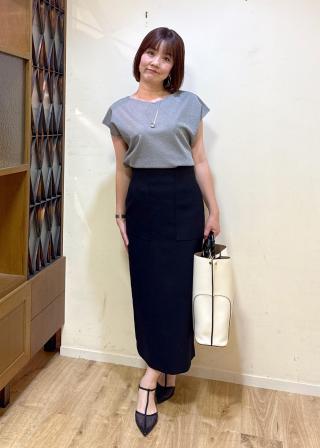 身幅に程よいゆとりがあるので、ボディラインを拾わずにお召し頂けます。ヒップラインにかかるくらいの着丈でした。