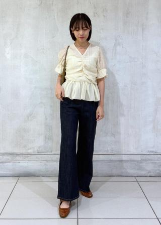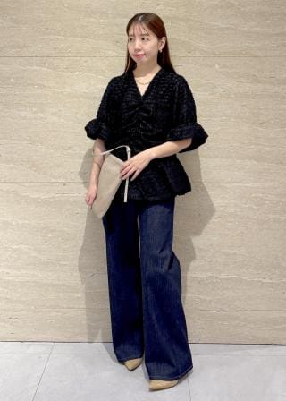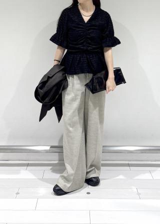 ふんわりと寄せたギャザーが立体感を生み出し、さりげない華やかさを添えるブラウス。