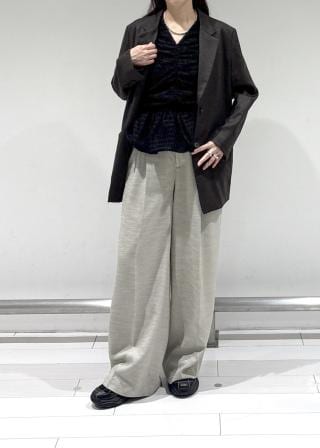 軽やかな素材感が動きに合わせて揺れ、エレガントな雰囲気を引き立てる一枚です。