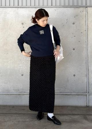 スウェットでもデザインがきれいめなのでボトム選びに悩まずにすみます。