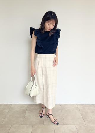 フリルは布帛でハリがあり、二の腕もカバーしてくれるので大人女子でもチャレンジしやすいです!