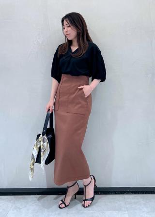 すっきりとしたVネックでお顔回り、デコルテ部分がスッキリ見せてくれる。フロントタックで裾の前後差をつけているのでさらっと着るだけで立体的なフォルムが生まれ、ゆったりとしたサイズ感なので涼しく着ていただけます。二の腕が隠れる袖丈で安心感をプラス。袖にシャーリングが入っているので、袖口に向かってドレープが入り、ブラウスのように綺麗見えします。ゆったりしたサイズ感ですが、ウェスト部分が細く見えるシルエットで、スタイルアップして見えるのも嬉しいポイント!