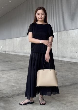 二の腕の気になるところもカバーしてくれるシルエットなのでおすすめです。
