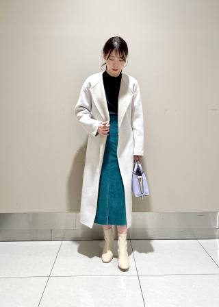 素材感のコントラストを付けた布帛のスカートとのスタイリングがおススメです。