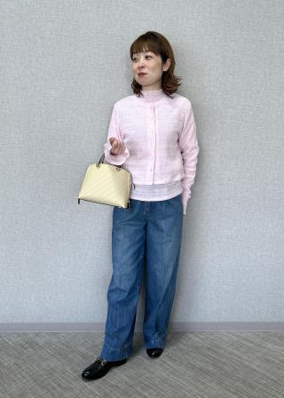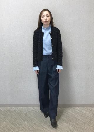 ニットなどとレイヤードしてもごわつかない柔らかい生地感なので重ね着もオススメ◎