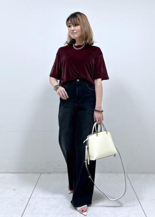 やや透け感のあるベロア生地でTシャツ感覚で軽く着られます。