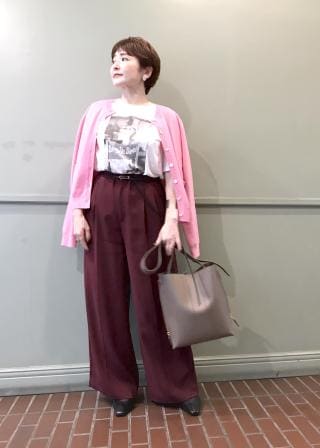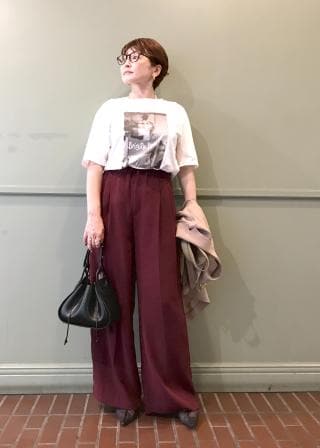 デニムパンツやイージーパンツなど、カジュアルなスタイリングにおすすめ。上からジャケットを羽織れば、大人のキレイめカジュアルスタイルが完成します。