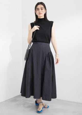 一枚着としてもジャケットのインナーとしても活躍。今季はフレアースカートやタックワイドパンツなどボトムスにボリュームを付けたスタイルがオススメ。カジュアルにデニムやスカートと合わせたり、お仕事用のジャケットやシャツのインナーとして合わせたり、ONでもOFFでも幅広いシーンで活躍します。