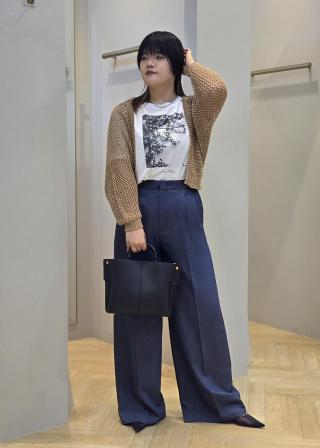 Tシャツですが、生地が綺麗目なのでデニムと合わせてもカジュアルになりすぎずコーデのポイントになってくれます。