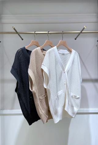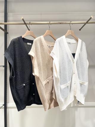 サラッとした素材で麻が入っているので涼しく、程よい透け感が夏らしいニットベストです!