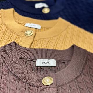 品のあるミニケーブル編みで、大柄なケーブルよりもコーディネートに合わせやすく、ややコンパクトなサイズ感と、袖口は見返し始末にすることで、カジュアルになりすぎず、大人の女性に着て頂きたい一枚です。