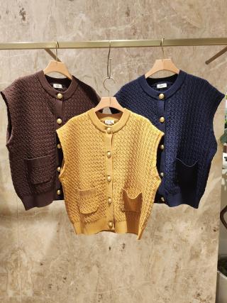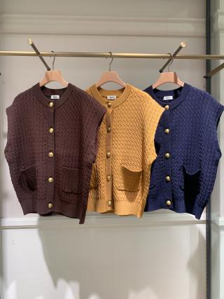 メタルボタンケーブルニットベスト