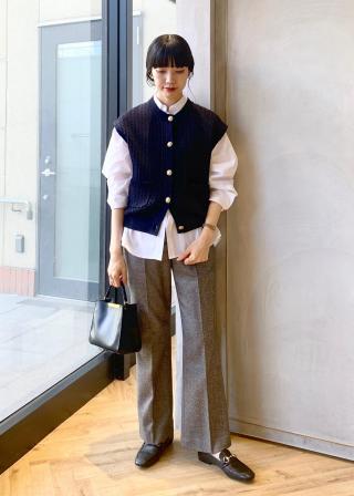 こちらは、肩も落ちず、サイズ感も良かったです。ジレだとカッコよくなりすぎるのですが、雰囲気もフェミニン寄りですのでジレの代わりに活用していこうと思います。