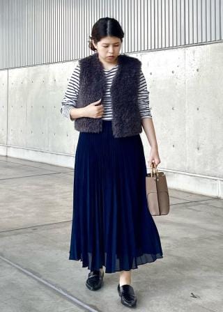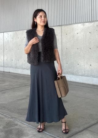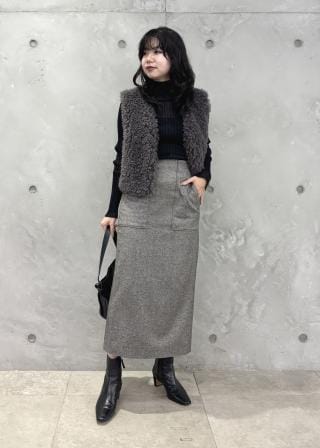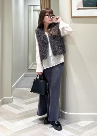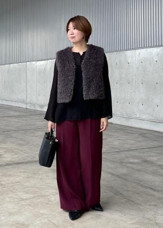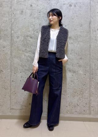 着丈がコンパクトなジレなのでボトムにボリュームのあるものを合わせてもスッキリと見えバランス感が取りやすかったです。