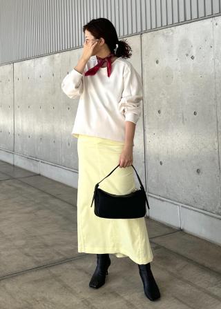 ちょっとしたポイントに小ぶりのスカーフは使いやすいです。冬になったら寒さも