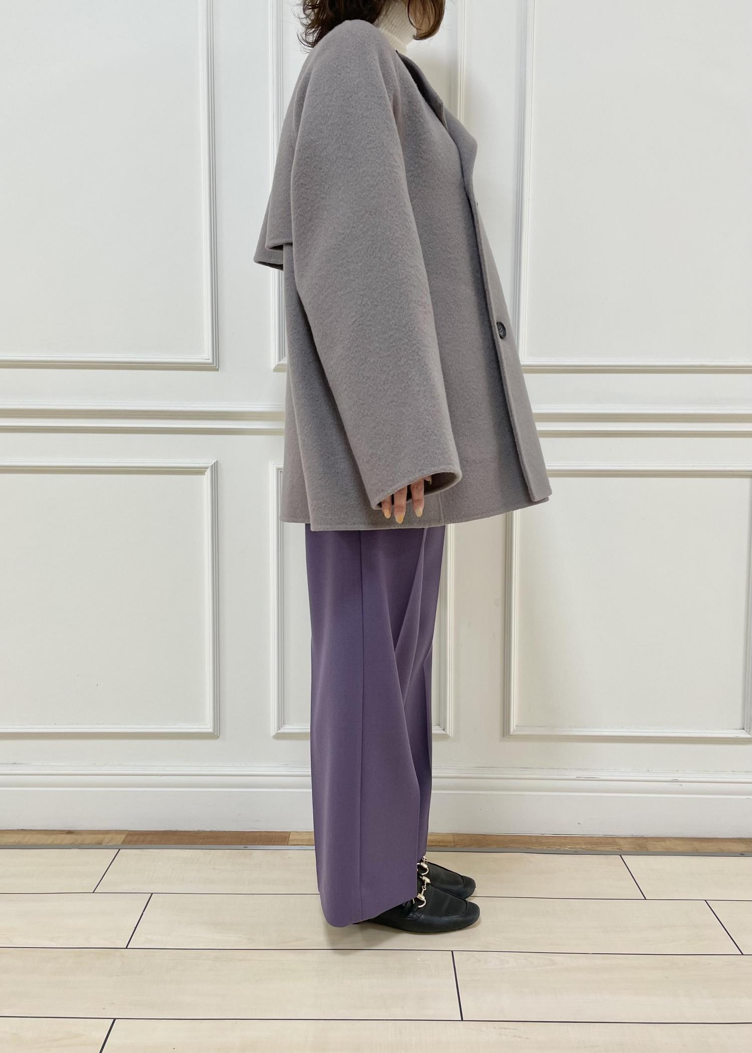 クルーネックのショートコートは、インナーを選ばずストールやスカーフを合わせたスタイリングも楽しめます!
