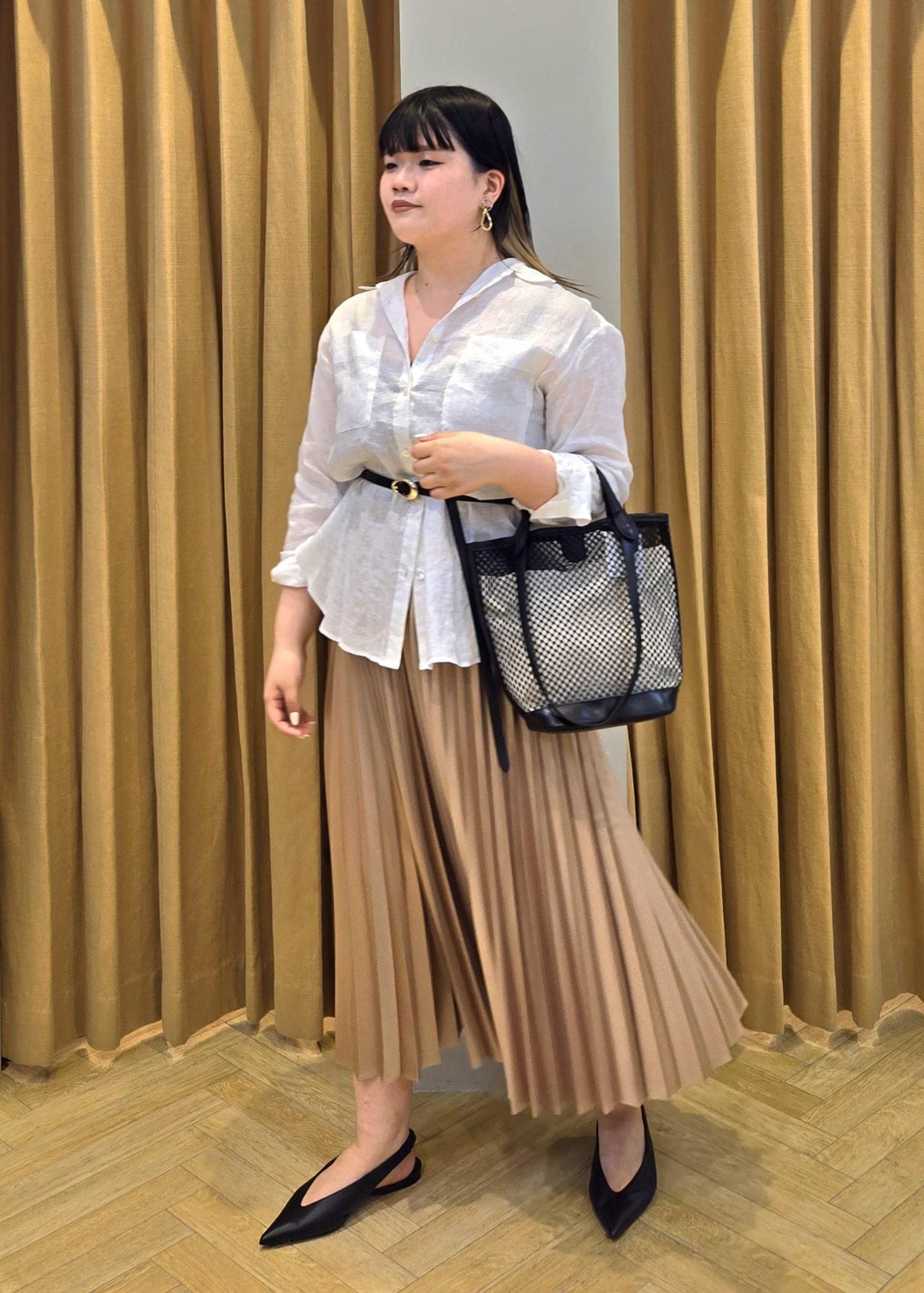 シンプルなデザインなのでストールなど冬小物でアレンジを楽しんでみて下さい♪