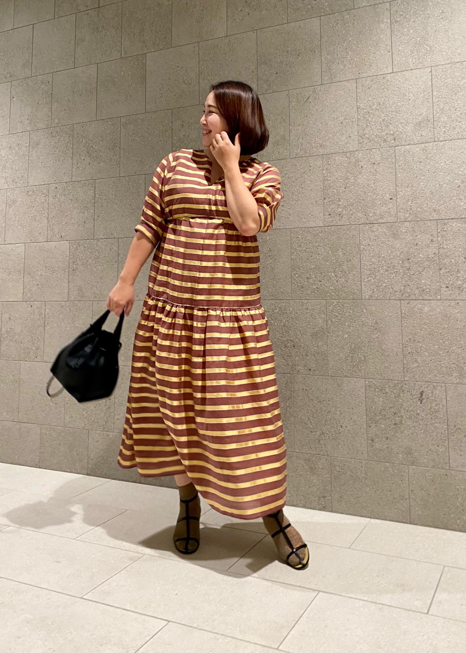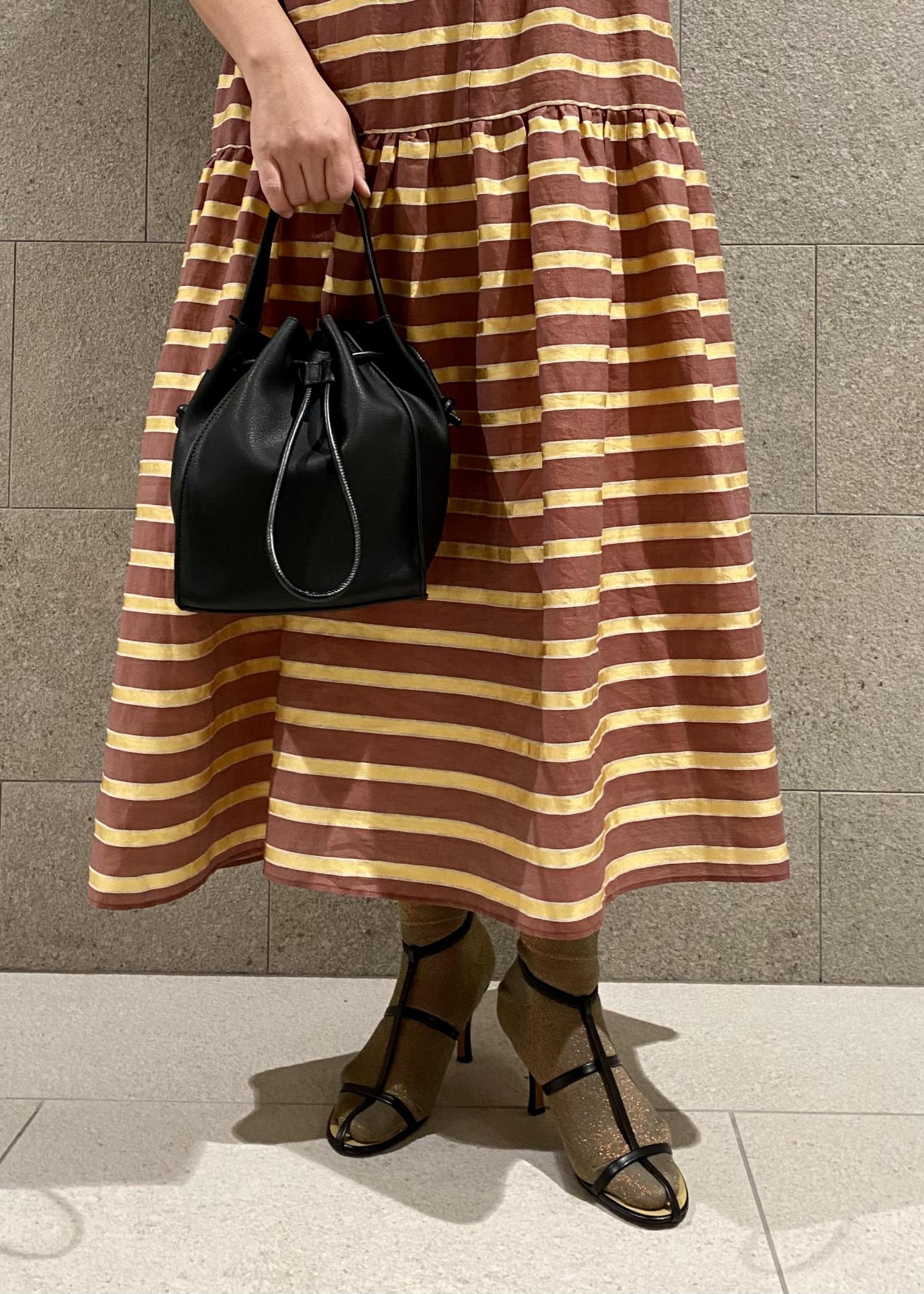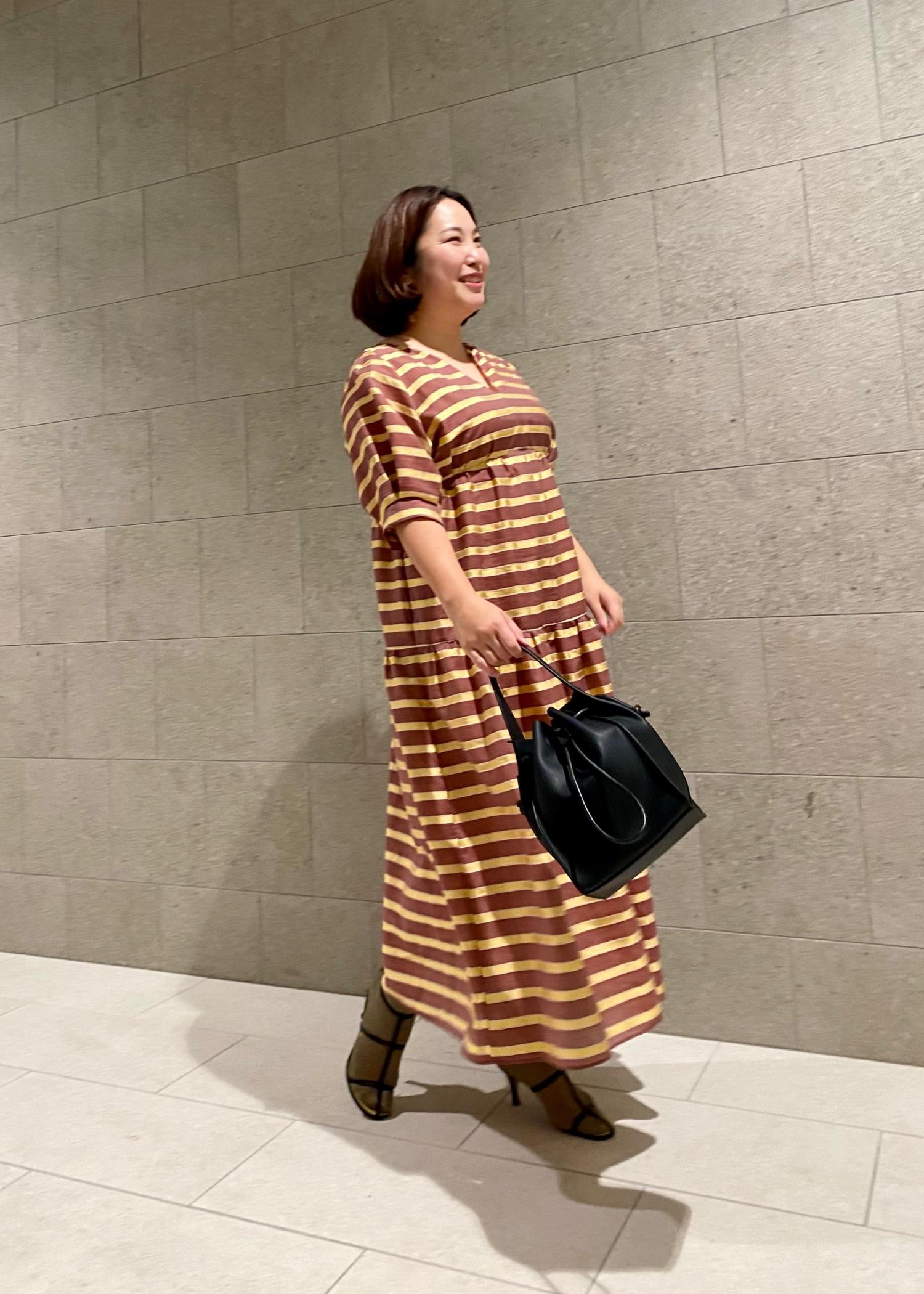 ラリーニュロペの汀(ミギワ)横縞ティアードドレスに〆色としてブラックカラーを選びました。