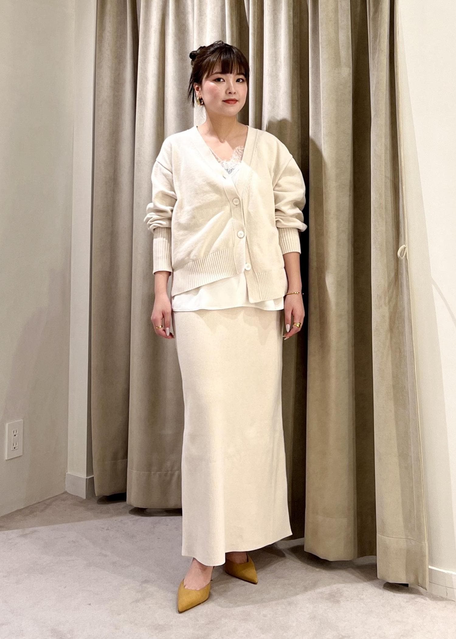 インナーにより表情が変わるサスペンダースカートはいろんな着回しを楽しんでいただけ、私も1着持っておきたいと思っているアイテムです!!