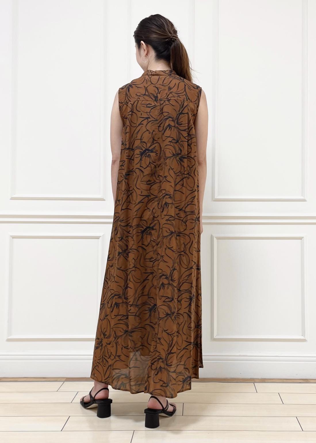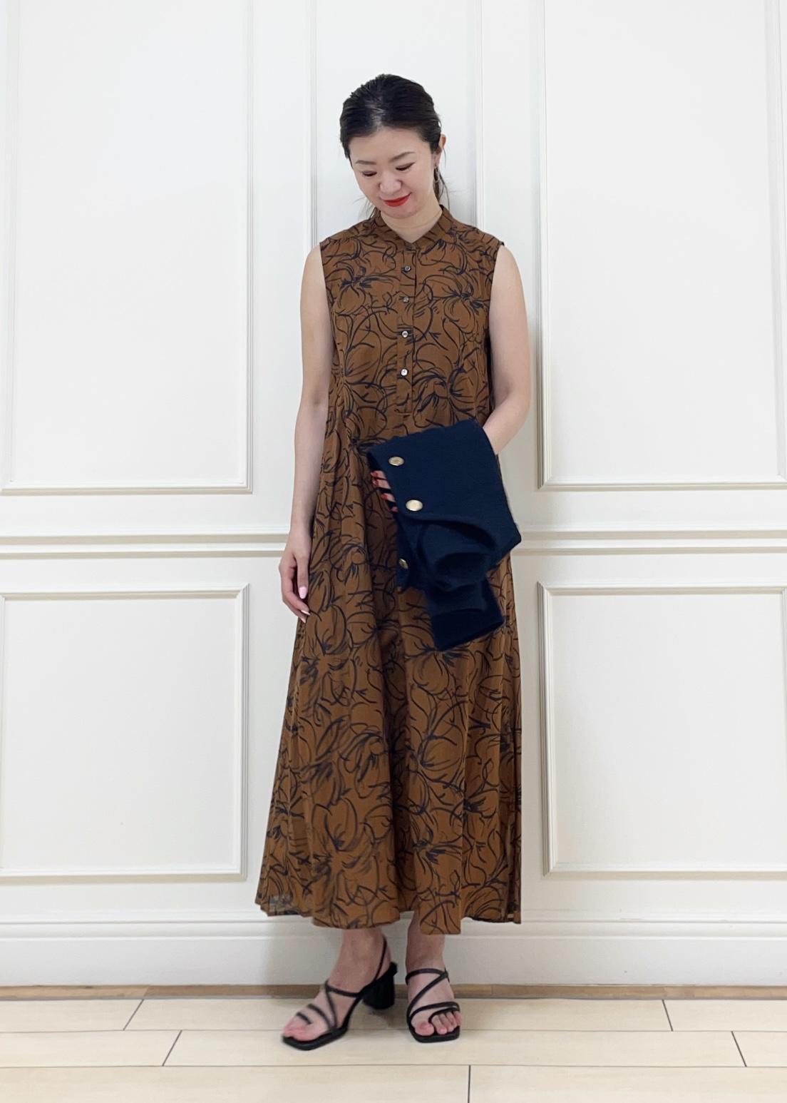 夏にお勧めな、ハンドペイントで描かれた花柄をプリントしたワンピースコーディネート。