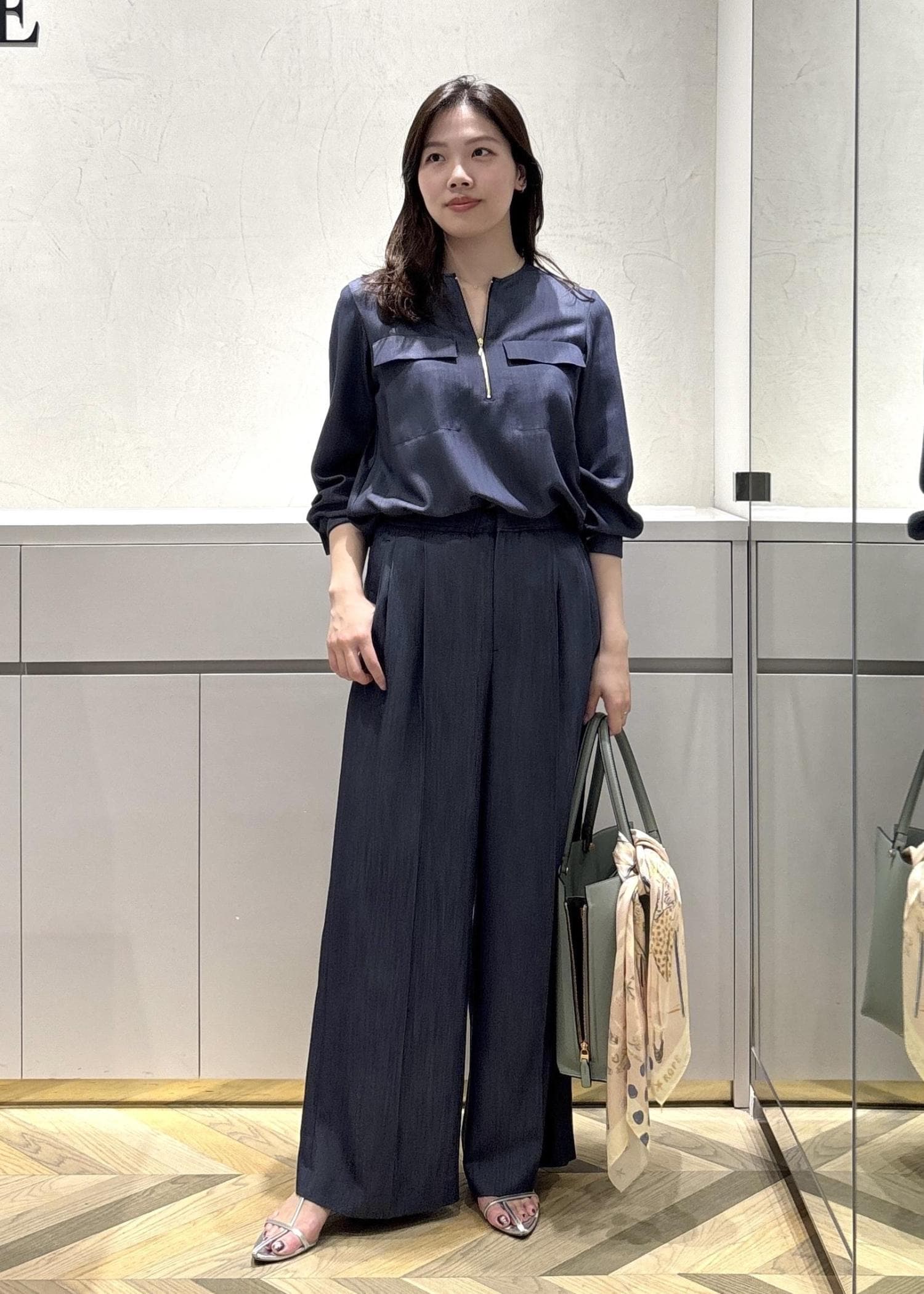シルエットや素材感、カラー共に存在感があり華やかなブラウスをメインにコーディネートしました♪