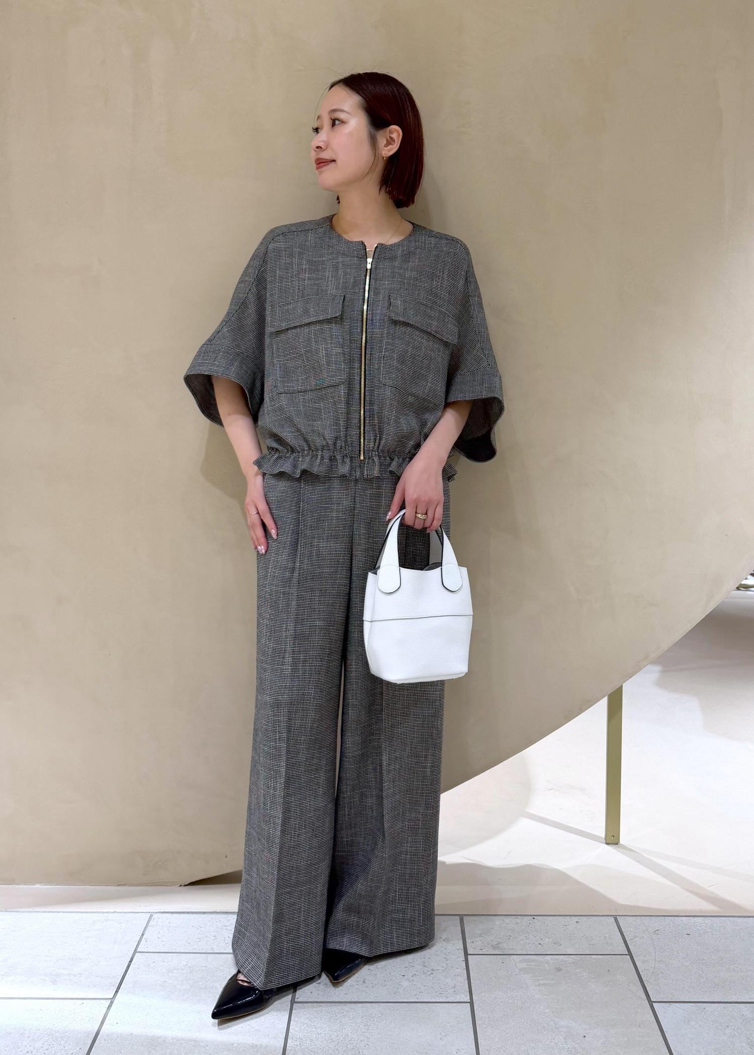 さらっとした素材のパンツを合わせる事で重たくなりすぎず抜け感がでます♪