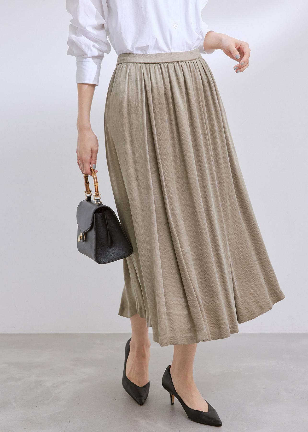 【IPEKAR(イペカ)】シルキーサテンタックギャザーフレアースカート/イージーケア