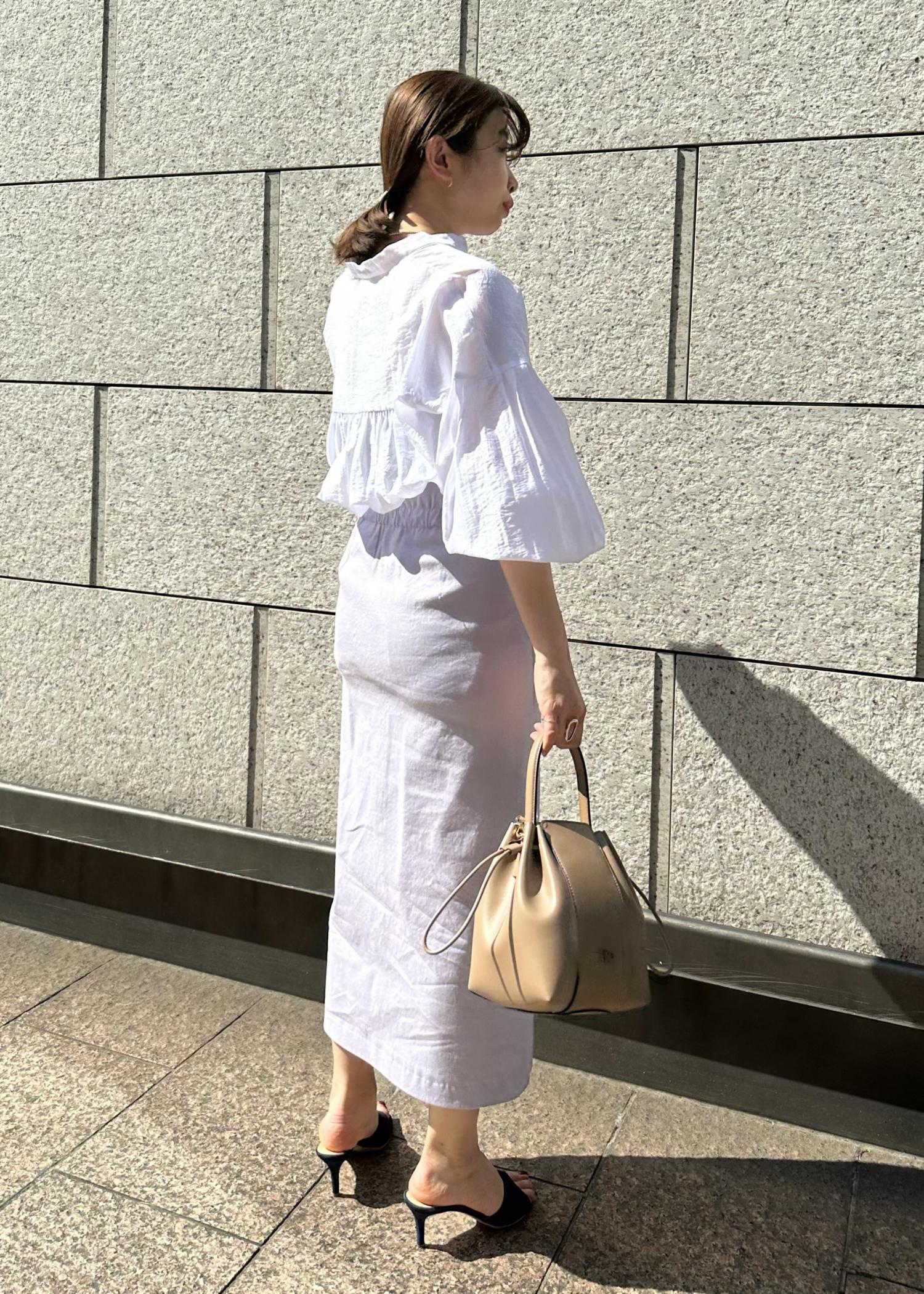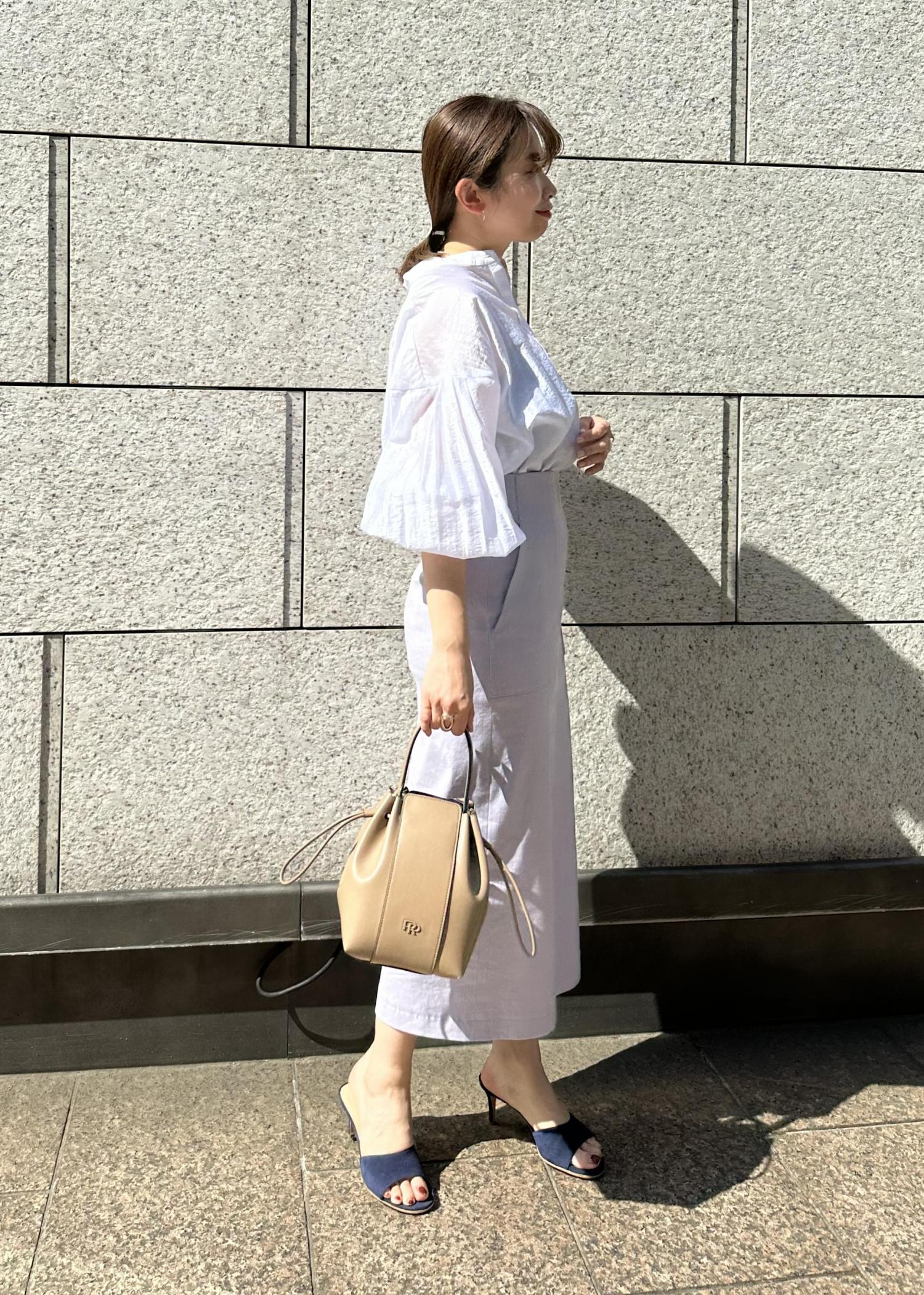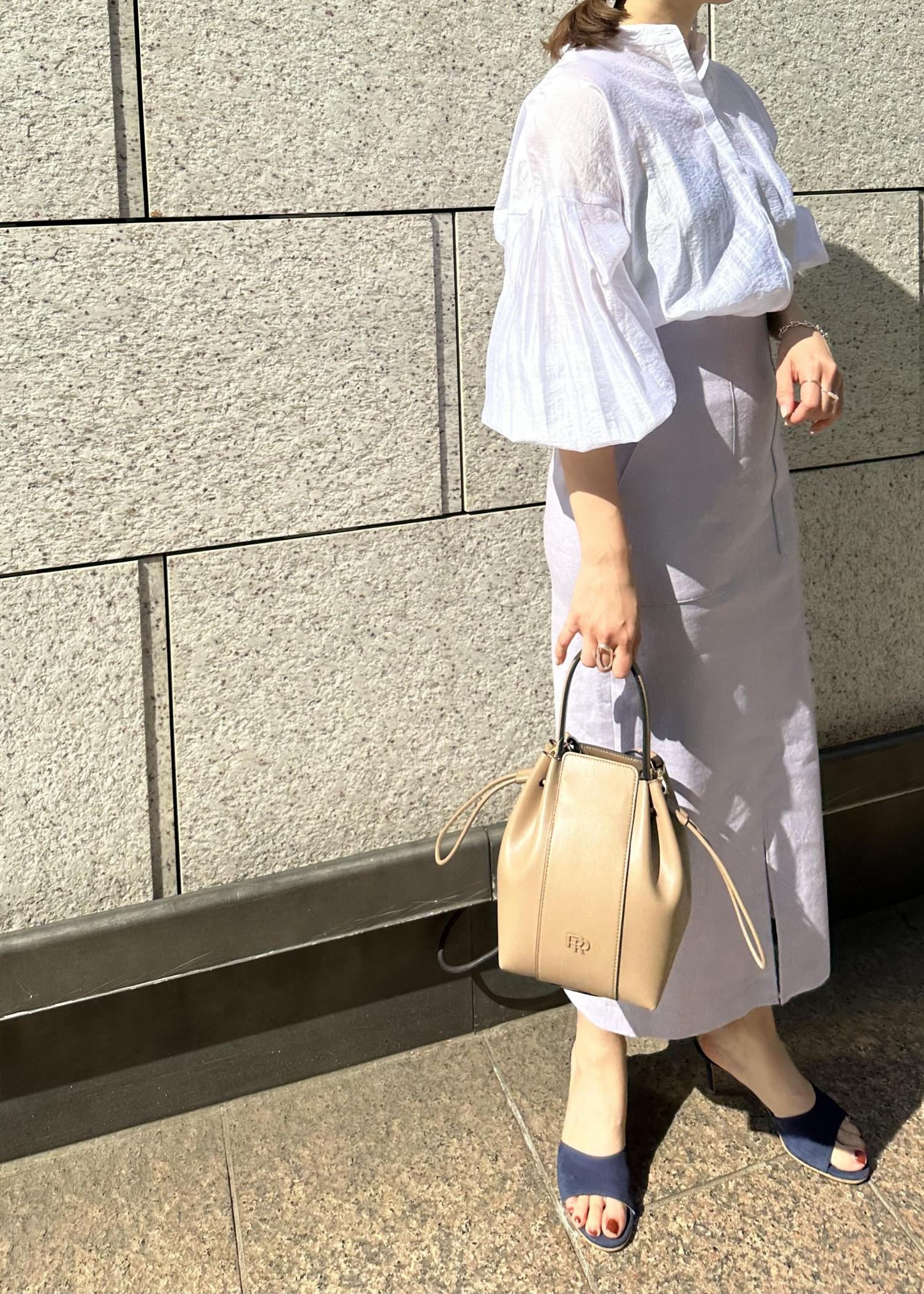 ラベンダーカラーにホワイトを合わせて春らしいきれいめコーディネートにしました♪