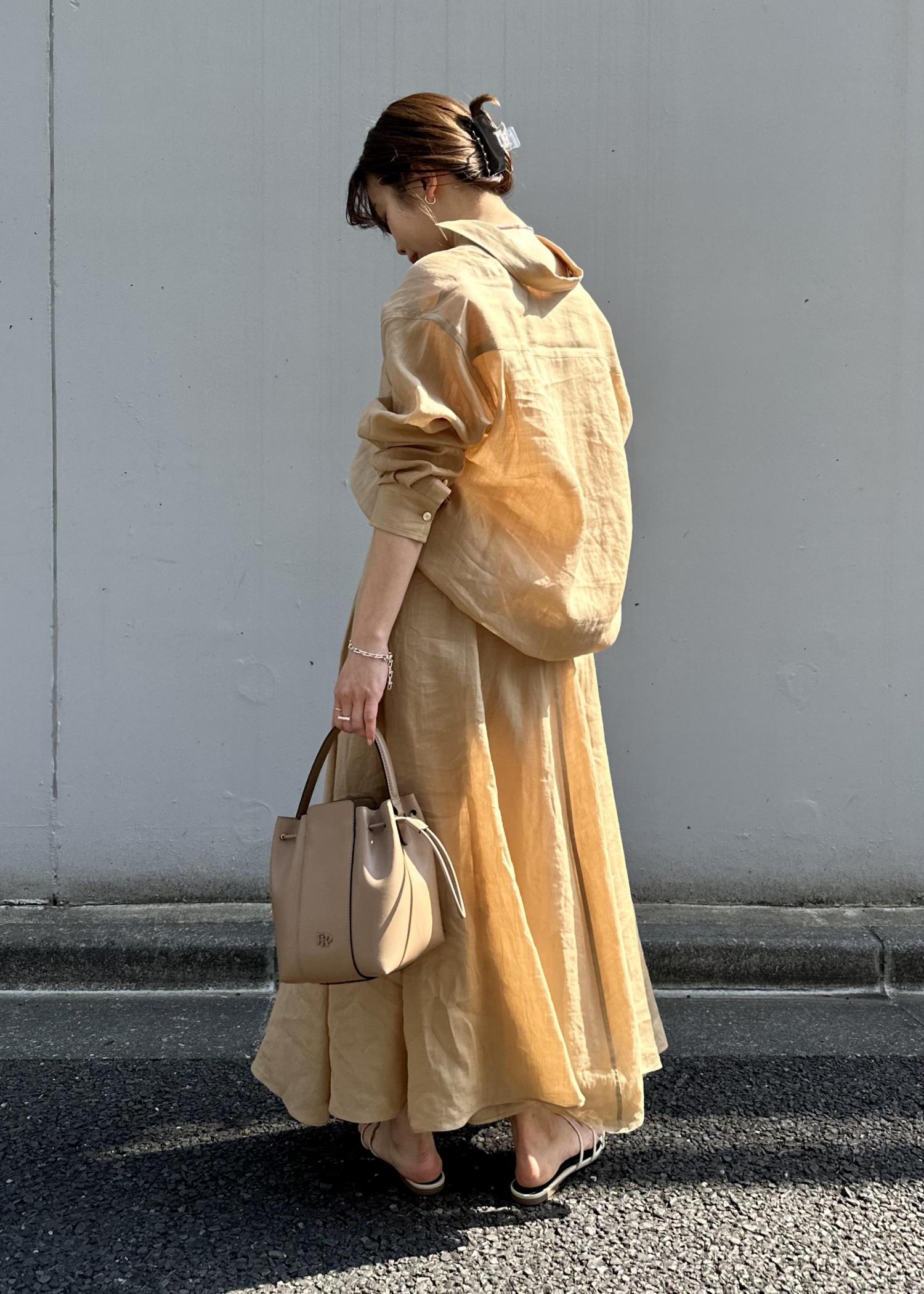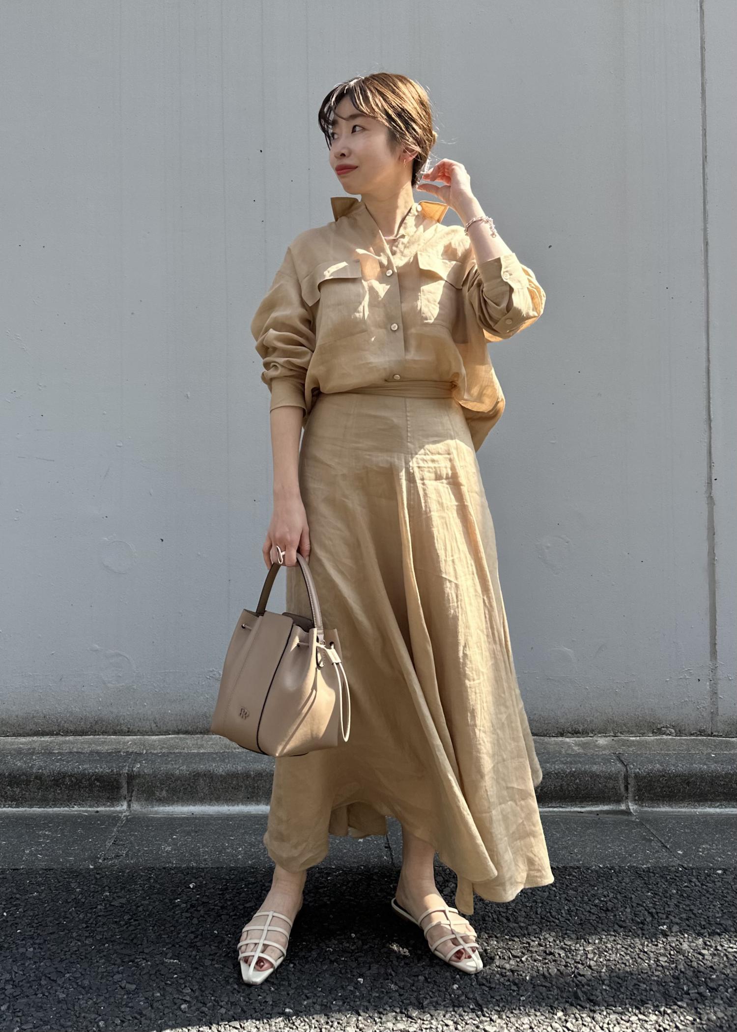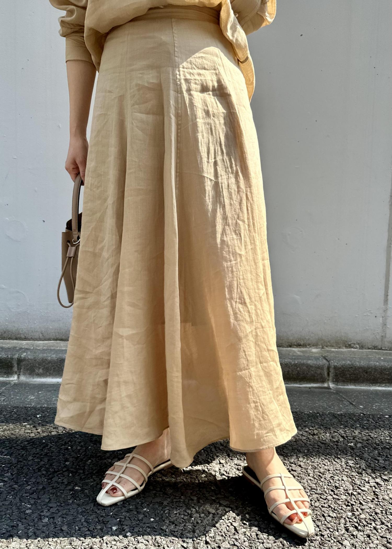 涼しげなラミー素材のシアーシャツとサーキュラースカートを