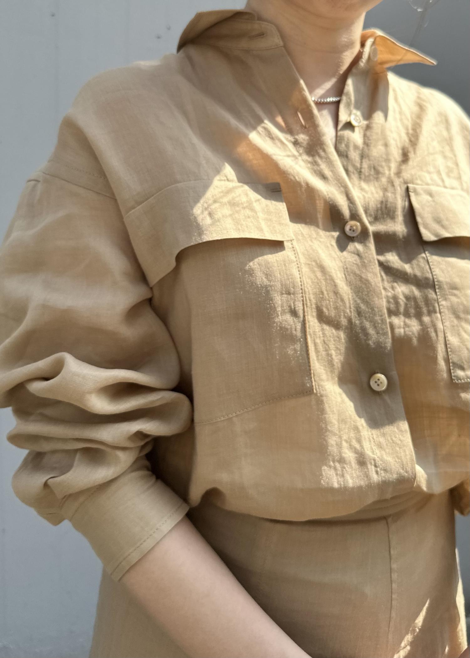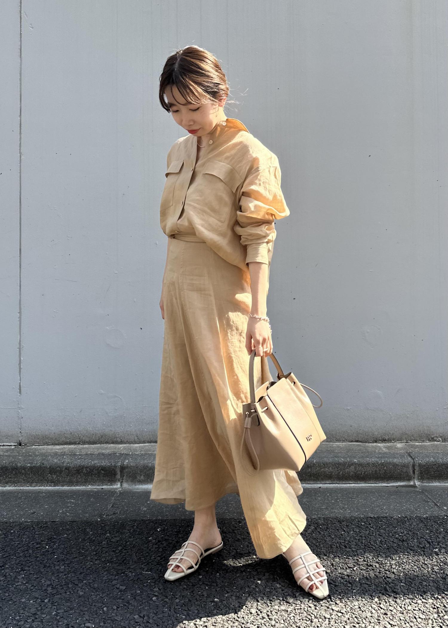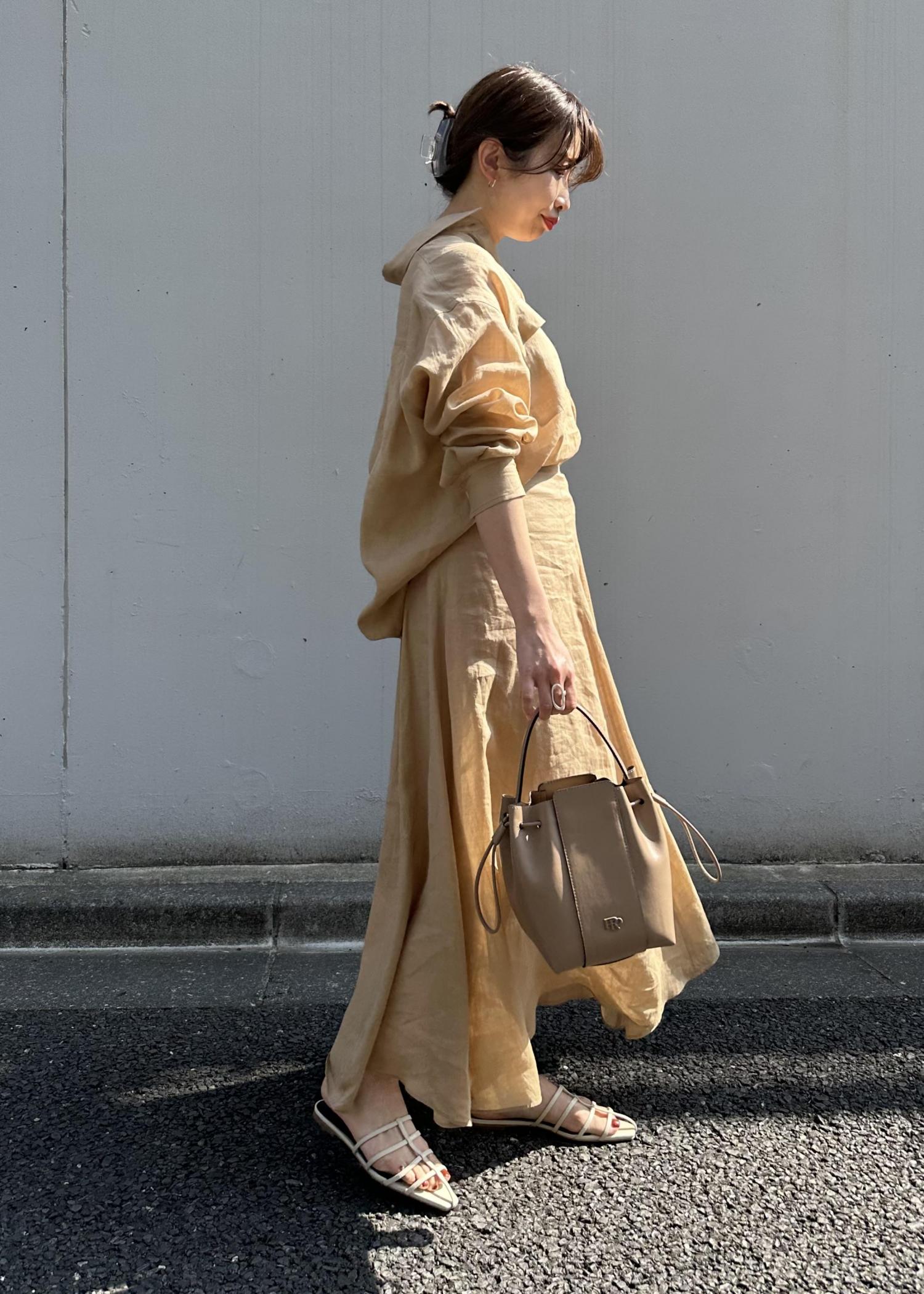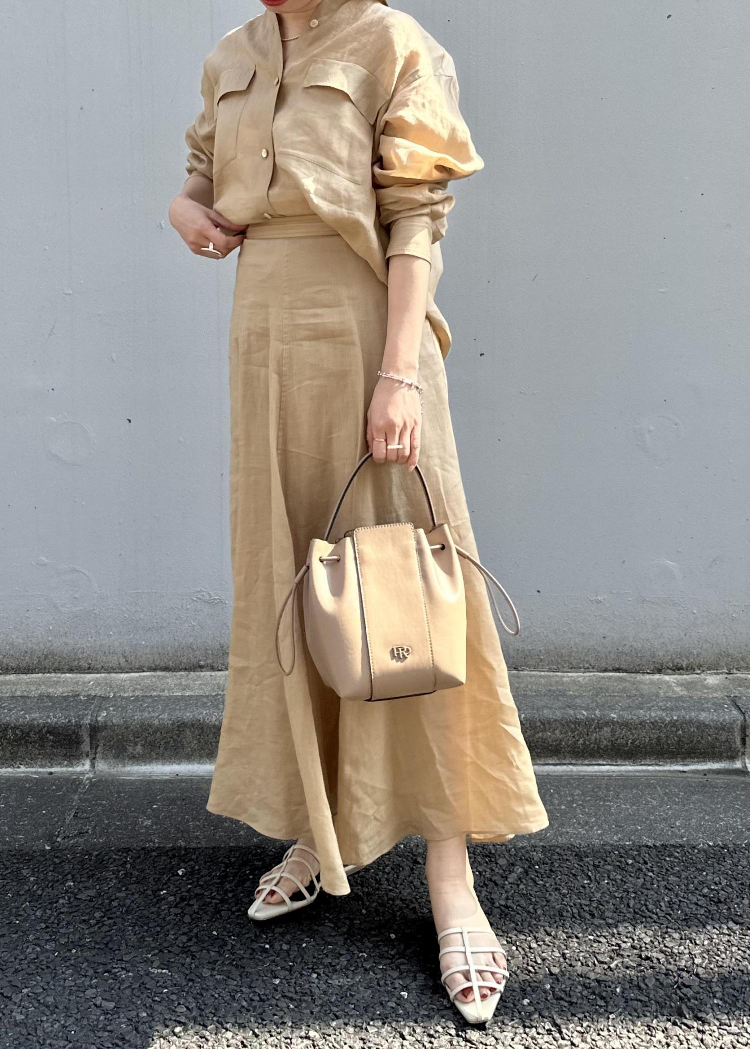 涼しげなラミー素材のシアーシャツとサーキュラースカートを