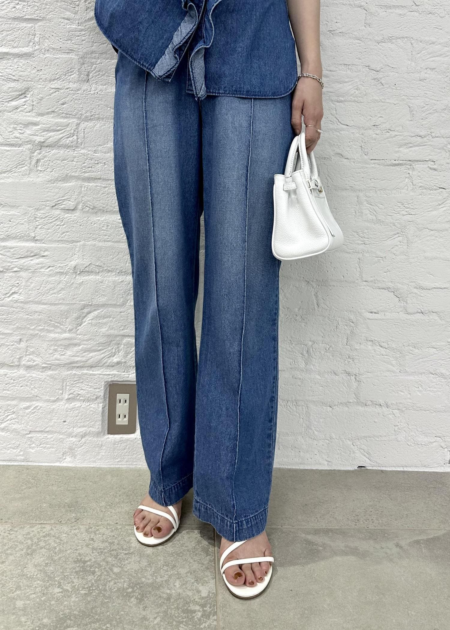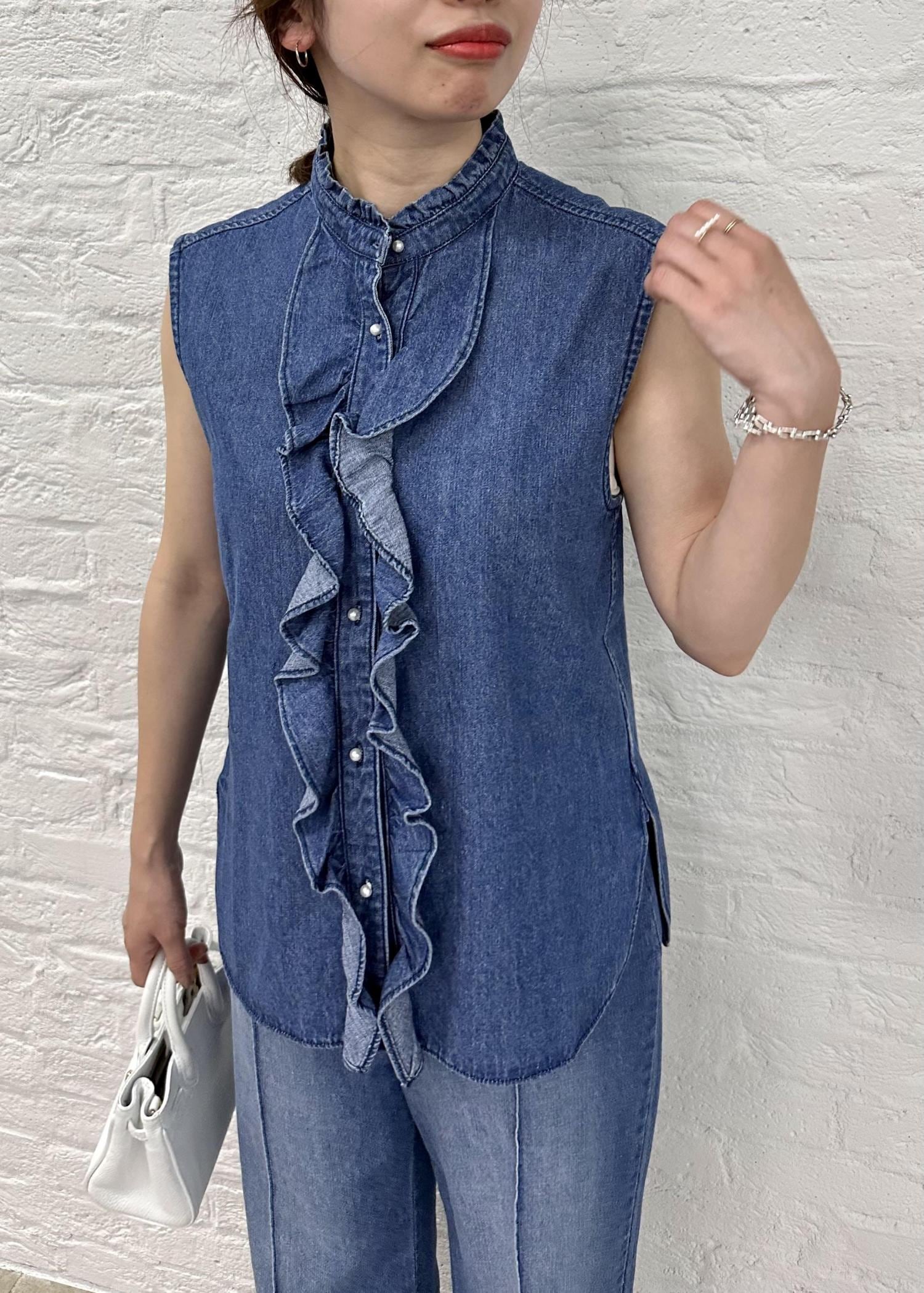 フリルブラウスは、ワイドパンツと合わせて少しモードにも、
