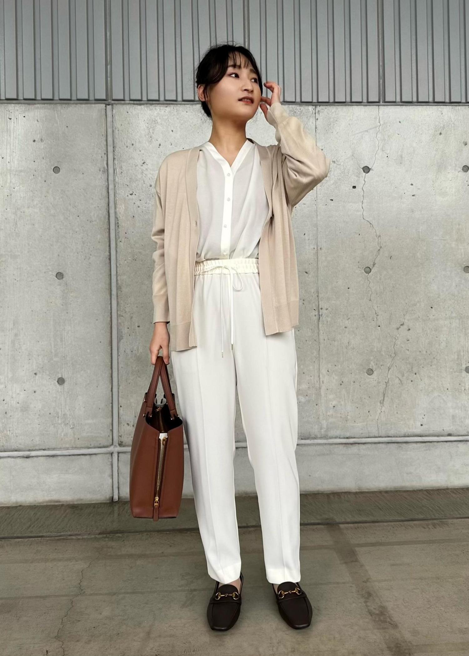 これから暑くなる夏までオンオフどちらのシーンでも着回せるカーディガンです。 今回はトップスボトムスをホワイトで合わせてオフィスカジュアルにしてみました。 普段はTシャツ×デニムのラフなスタイルもおすすめです。 ※店頭及び屋外での撮影画像は、光の当たり具合で色味が異なって見える場合がございます。 商品の色味はスタジオ撮影の画像をご参照下さい。 LINEでロペスタッフに相談は【友だち追加】をタップをして下さい