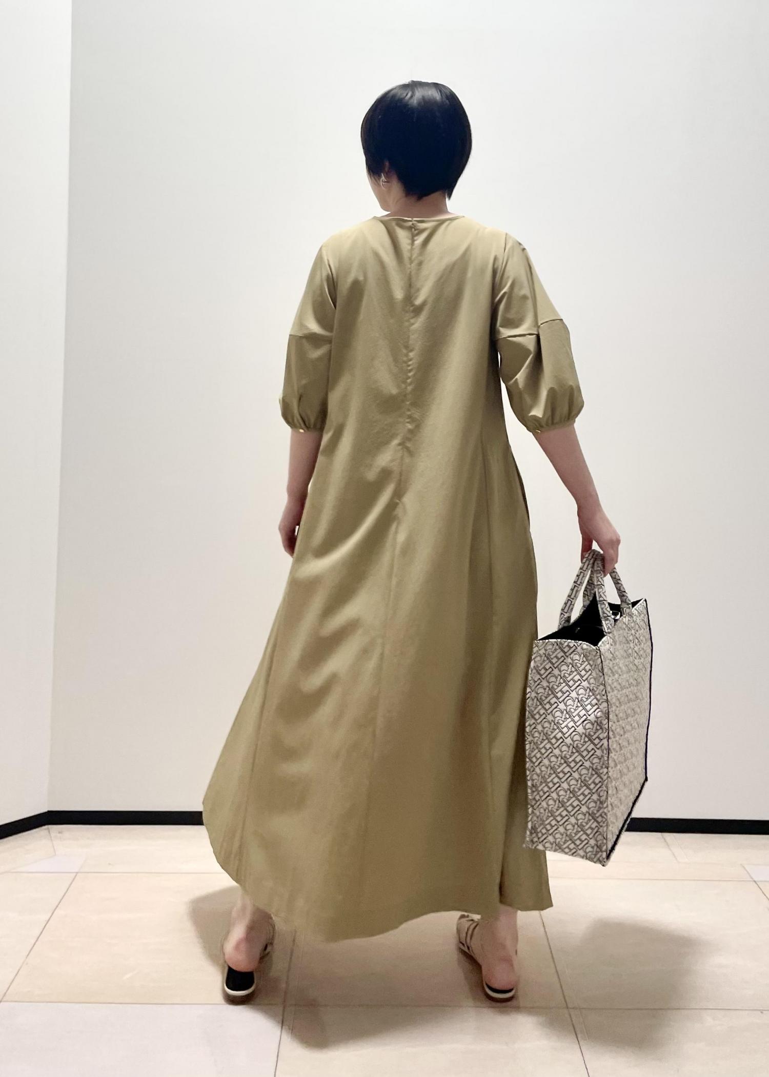 フレアラインのシルエットはウエスト、ヒップラインも楽ちんで気兼ねなくお召しいただけます。