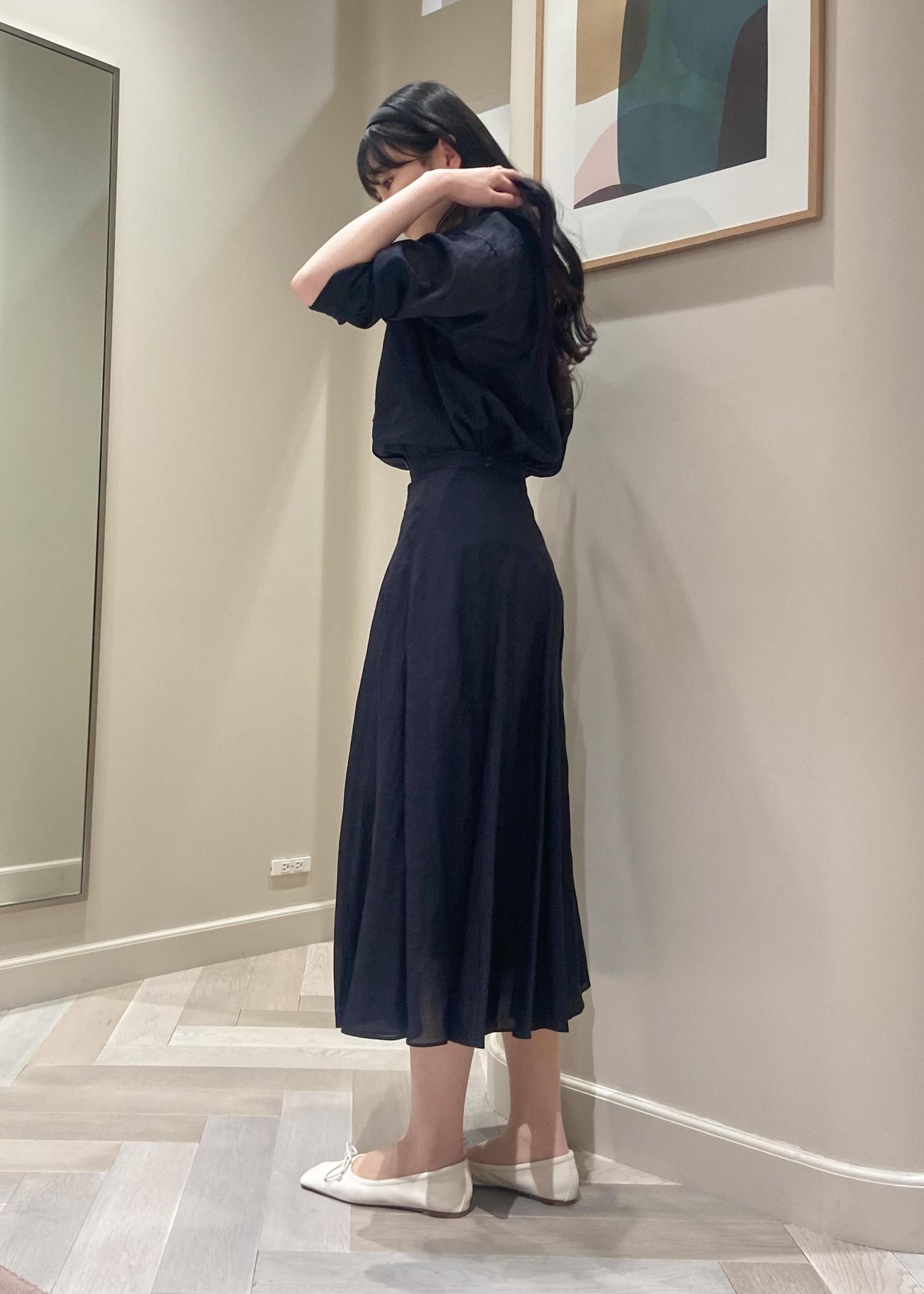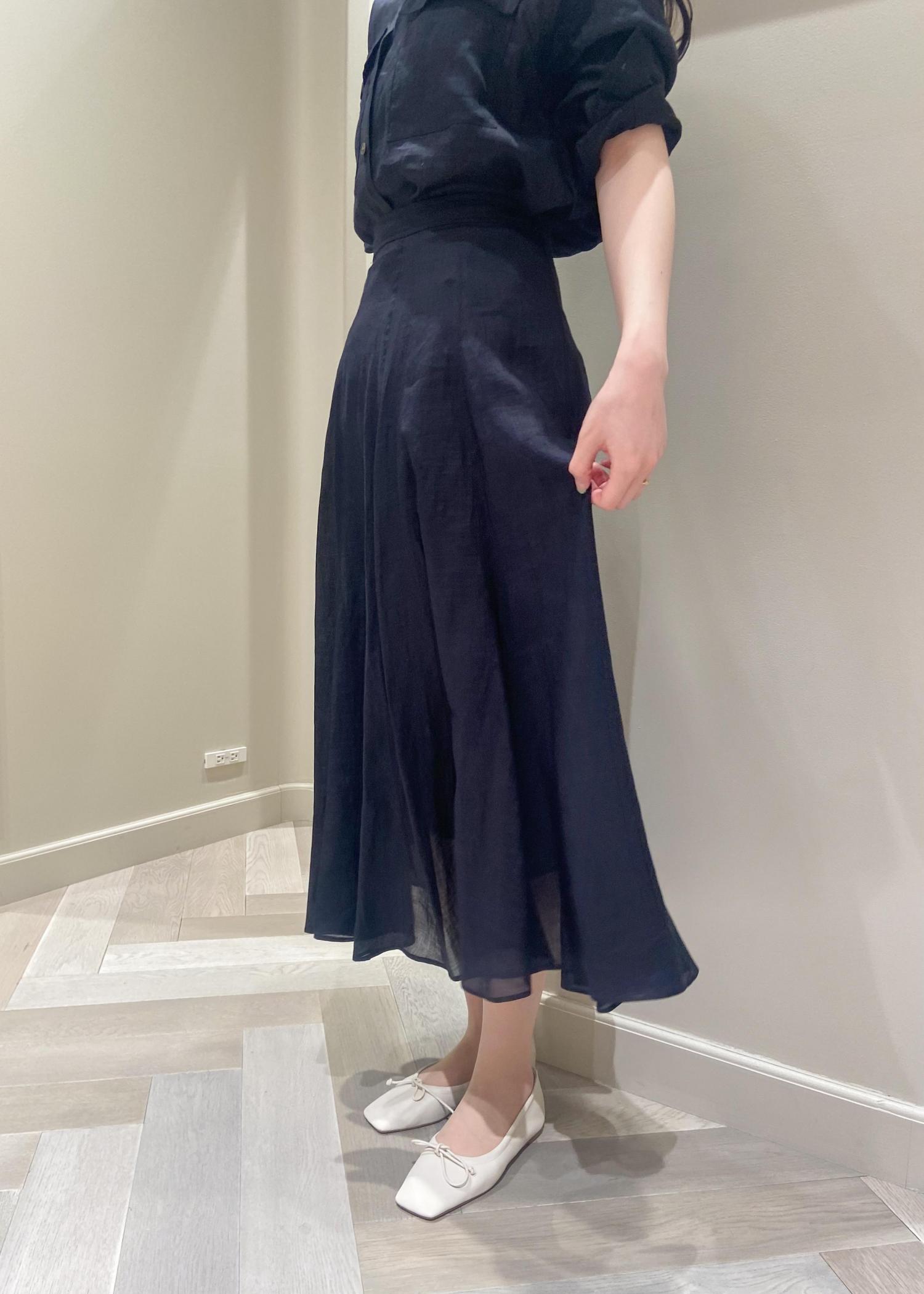 ネイビーカラーでの組み合わせは大人フェミニンな印象になります。