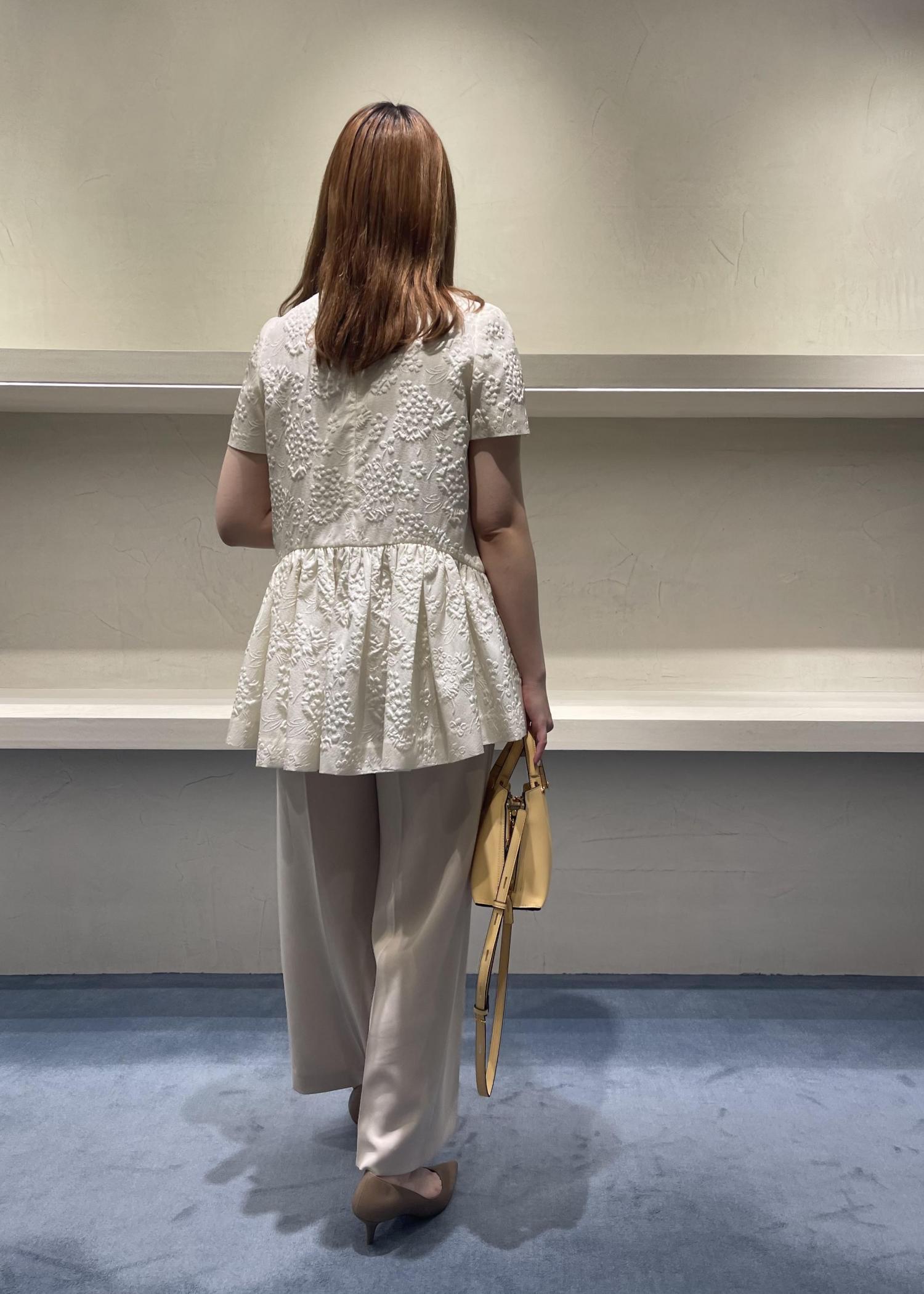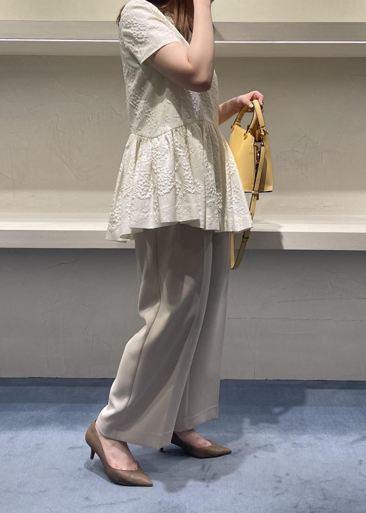 ほどよくキナリ寄りのカラーが甘すぎずフェミニンな雰囲気で着ていただけます。