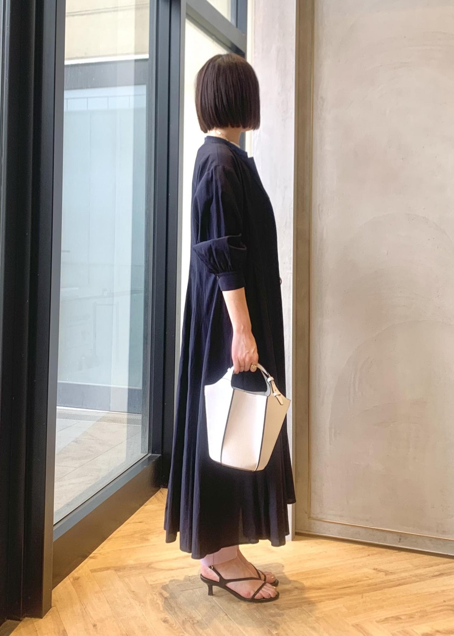 前を締めて着ると、ウエストのシェイプと裾のフレアーでメリハリがとても綺麗で、着痩せ効果もあります。