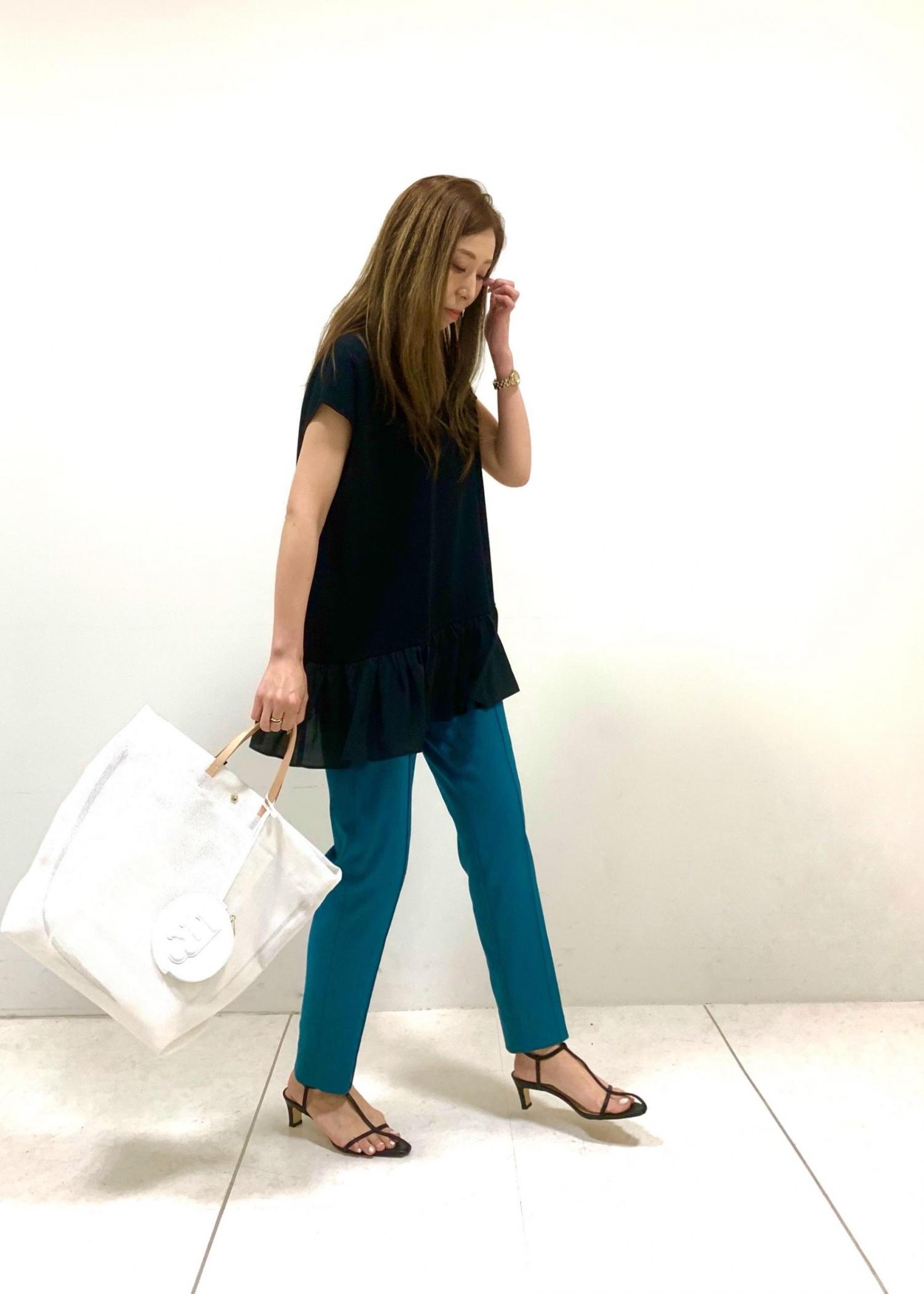 ヌーディな抜け感が出せるので、Tシャツ+デニムのカジュアルスタイルにに合わせても