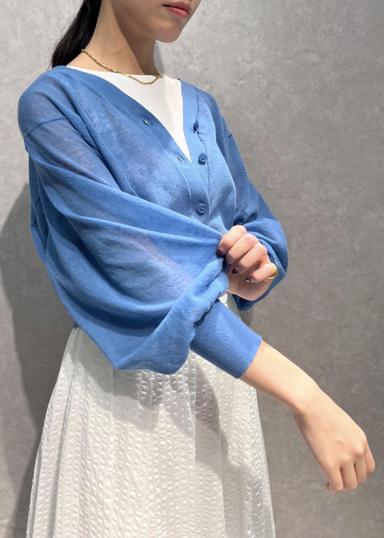 ノースリーブとフレアスカートだけでもセットアップの様にまとまりがありますが、シアーカーディガンをプラスする事で肌見せし過ぎず上品にまとめたのがポイントです♪